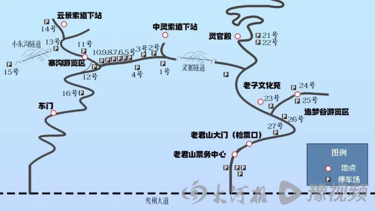 ■网上提前购票的游客到达景区无需下车,可开车通过检票站,听从工作人员指挥将车停放在索道周边的停车场(停车场分布请看下图)。