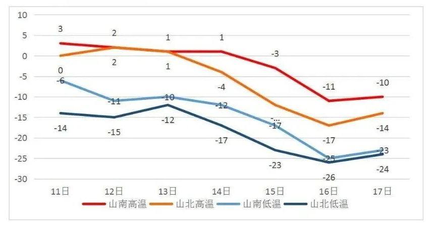 山北气温-26~-17℃