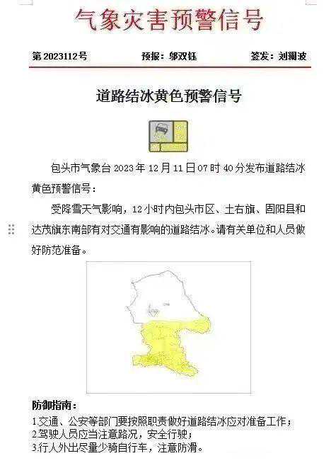 发布道路结冰黄色预警信号