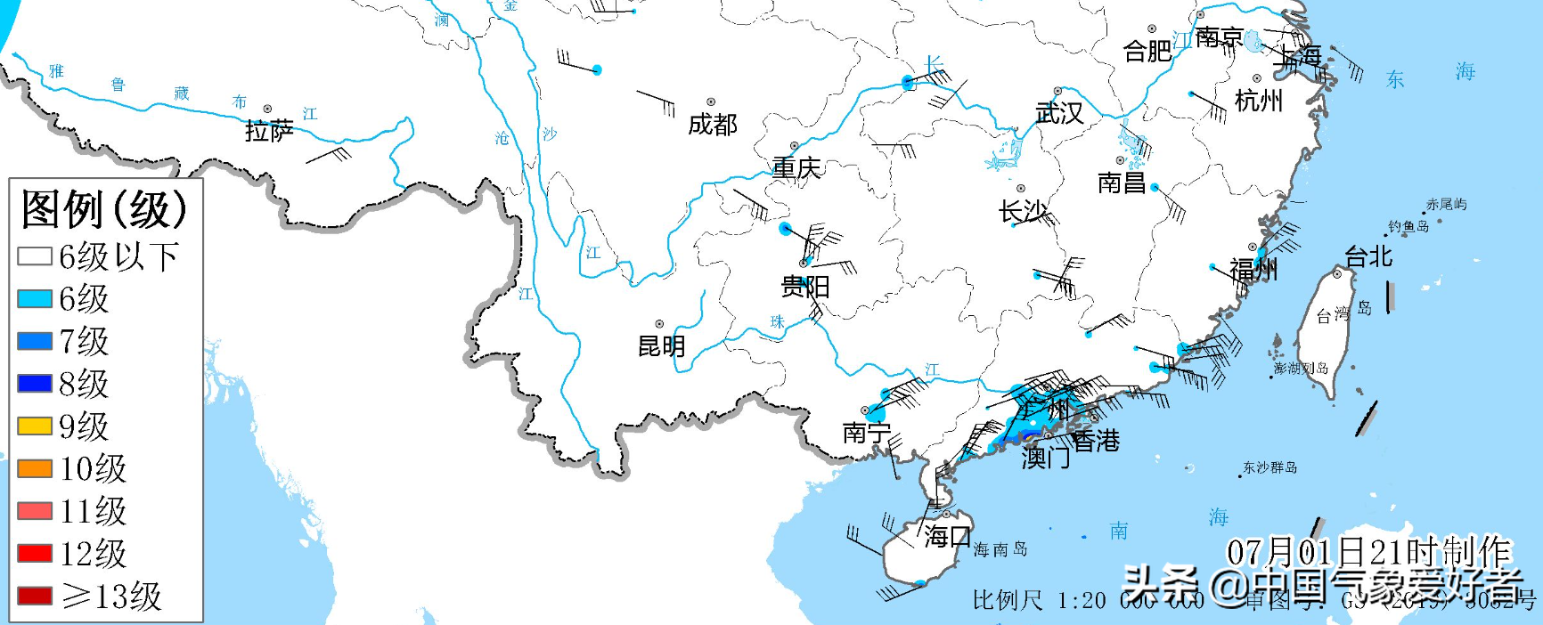 随着台风暹芭的雨带在华南沿海上岸,目前华南多地的风雨已经开始加强,例如香港天文台报告显示,7月1日晚香港昂坪、横澜岛及长洲泳滩分别录得最高持续风速为每小时84、68及67公里,最高阵风分別为每小时106、81及87公里。香港天文台今天晚间已经挂起了8号东南烈风或暴风信号,也就是大家熟知的8号风球(8号波),指出与台风暹芭相关的雨带会不断给香港带来大骤雨及猛烈阵风,海面有非常大浪及湧浪,香港天文台提醒市民应远离岸边并停止所有水上活动。此外,同样位于珠三角的澳门,澳门地球物理暨气象局也挂起了8号风球,显示出台风暹芭正给华南沿海带来明显影响。