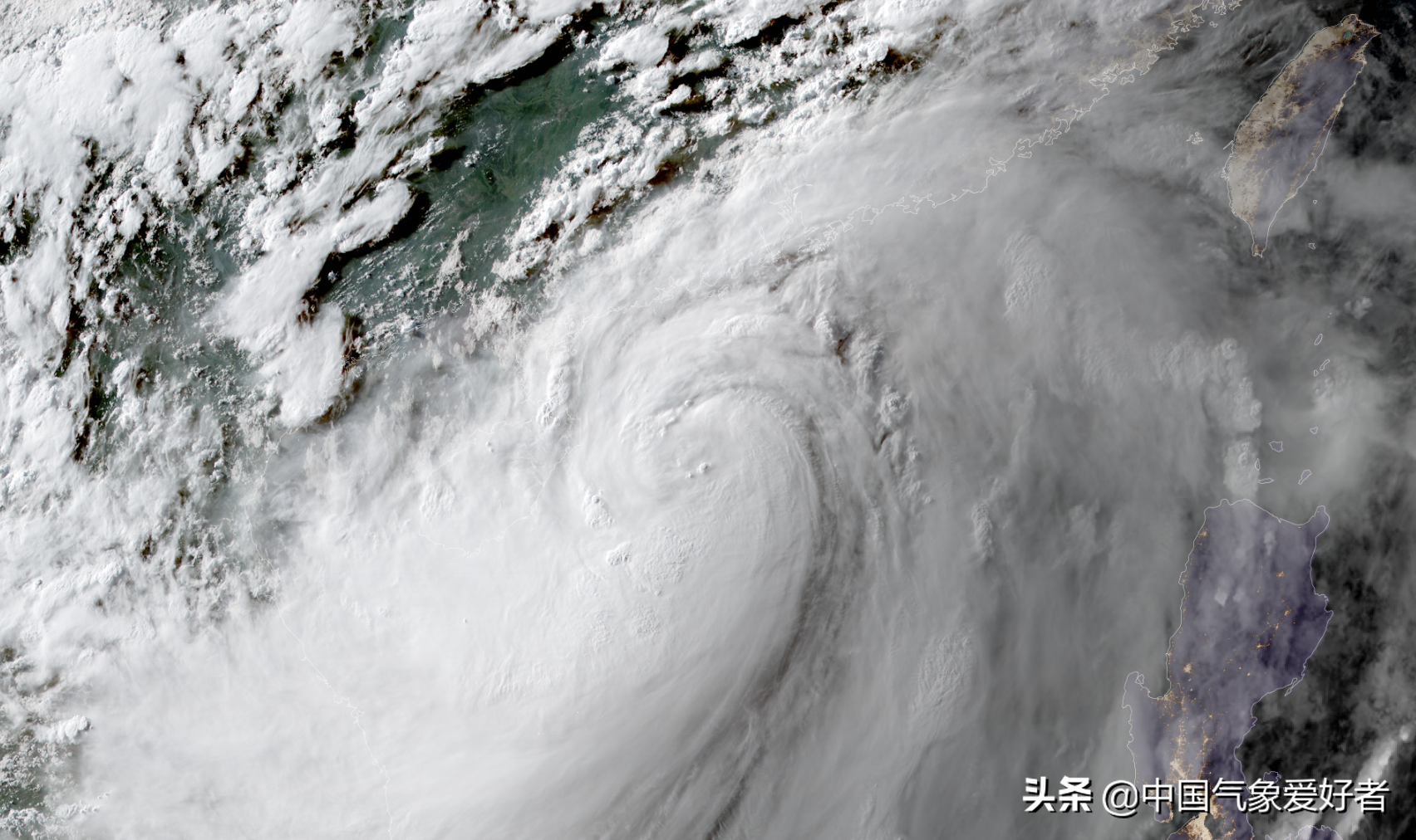 甚至于从华华南雷达图上看,不仅台风暹芭的雨带正在广东、福建、海南等地上岸,而且中心附近的环流结构也在雷达图上若隐若现,可以观察到隐隐约约的环状风眼结构,这说明了台风暹芭自昨天命名以来已经连续升级,今天晚上已经是11级的强热带风暴上限。
