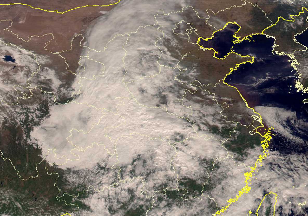 在我国中东部,今天上午除了阴雨天气外,更是出现了大范围的浓雾,从卫星云图上看,那些薄而发灰的云层都是雾。