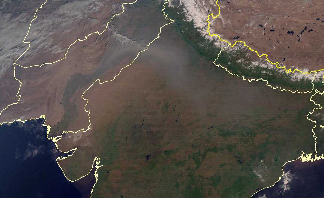 除了我国以外,在印度北部,空气污染让这里的土地盖上了一层异常的灰色。