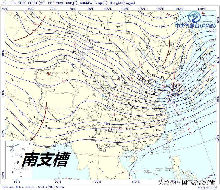 大家都知道“暴风雨前的平静”,过分平稳的天气不太会是天气系统的常态。从目前的情况看,在中央气象台公布的500百帕层面天气分析图上看,我国上游的西风带中已经出现了一些不稳定因素——比如青藏高原以南的南支西风中,南支西风已经猛烈向南扭曲,这形成了一道深邃的南支槽,而随着南支槽的逐渐东移,它能带来更多的水汽,因此将可能导致我国的天气变得更不稳定。