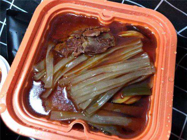 面的口感也很怪,果然这种自热的食品不太适合以面为主食,半生中又有过熟的感觉,而且这个面也有一种烧焦塑料的味道。