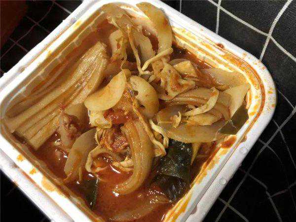 与其他小火锅不同,湿面取代了粉丝的主食地位。让团长惊喜的是,居然还有一包牛肚!瞬间感觉自己捡到了宝。
