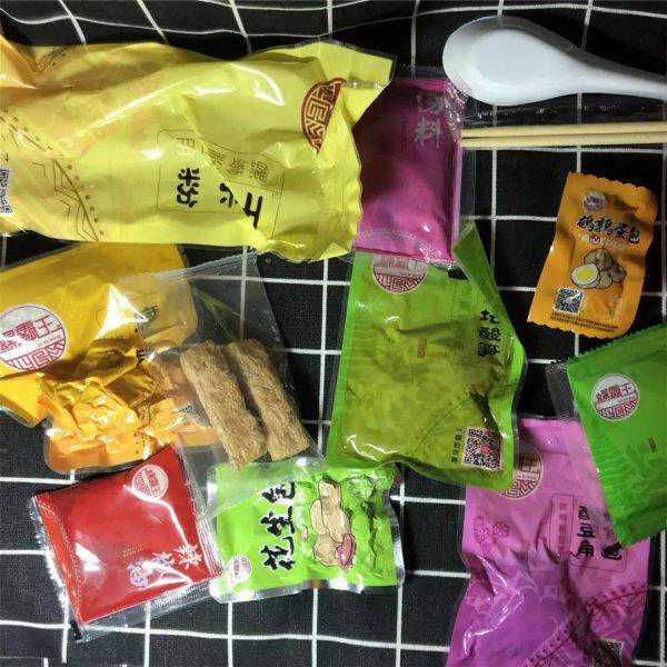 这款钵钵鸡同样分为荤素两包,素包一定要试,因为素菜配辣油香料简直爽脆鲜辣;但是,荤菜包一定要谨慎食用,因为没有经过加热,所以肉是黏合在一起的,用筷子弄开却变得稀碎,食肉体验太差。