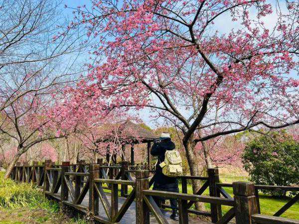 园内早樱河津樱、椿寒樱当前正处于最佳观赏期,炫耀夺目,迎风招展;大渔樱、胭脂绯等渐次开放,妩媚娇羞,逐步进入最佳观赏期;大寒樱、飞寒樱也已花苞泛红,预计三月中旬左右盛花。