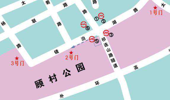 2号门:经祁连山路隧道至镜泊湖路到达公园二号门停车场(高峰日期间因二号门停车场容量较小可能提前关闭)