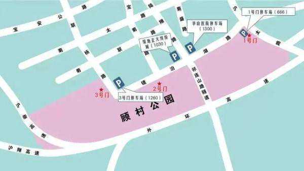 当沪太公路顾村公园1号门停车场接近饱和时,封闭公园1号门中心隔离,机动车至沪太公路镜泊湖路左转,沿镜泊湖路按绿地正大缤纷城、公园3号门停车场、华山医院顺序依次有序停车。