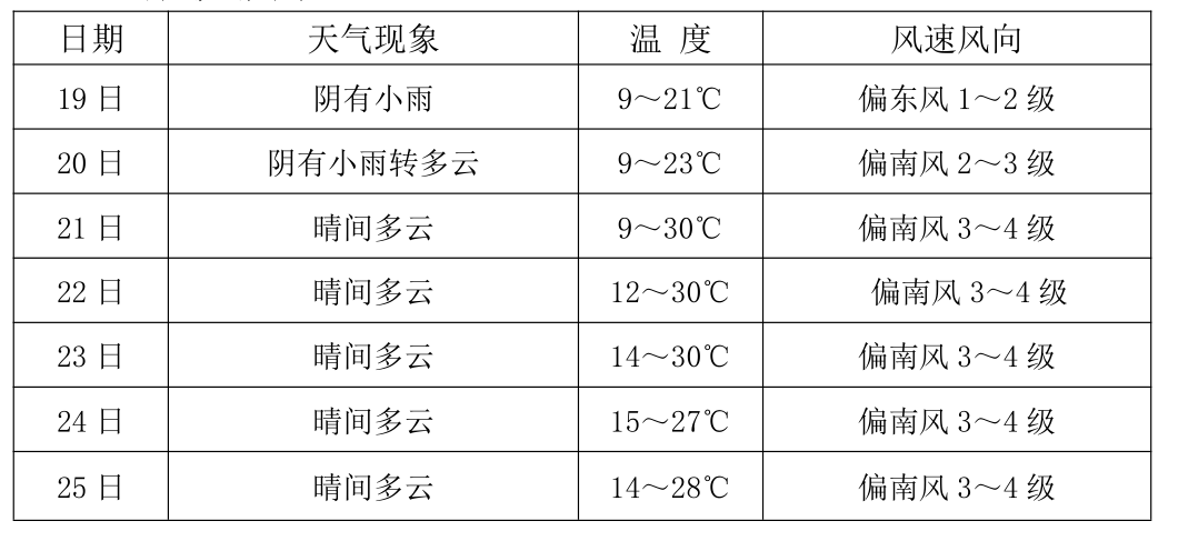 3、本周中后期午后有大风,需防范大风天气可能造成棚舍和广告牌等搭建物的倒塌以及对设施农业、高空作业、水域作业和航空运输的不利影响。
