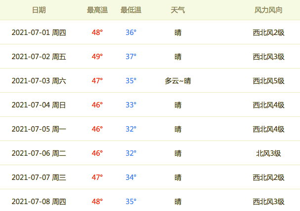 当地时间,7月4-6日,科威特城的最高温度都是46℃,远远没达到新闻中提及的73℃,相比之下,7月2日和8日的最高气温反而一举摸到了48℃的高点。在中国的吐鲁番,夏天气温最高也能达到49℃以上。