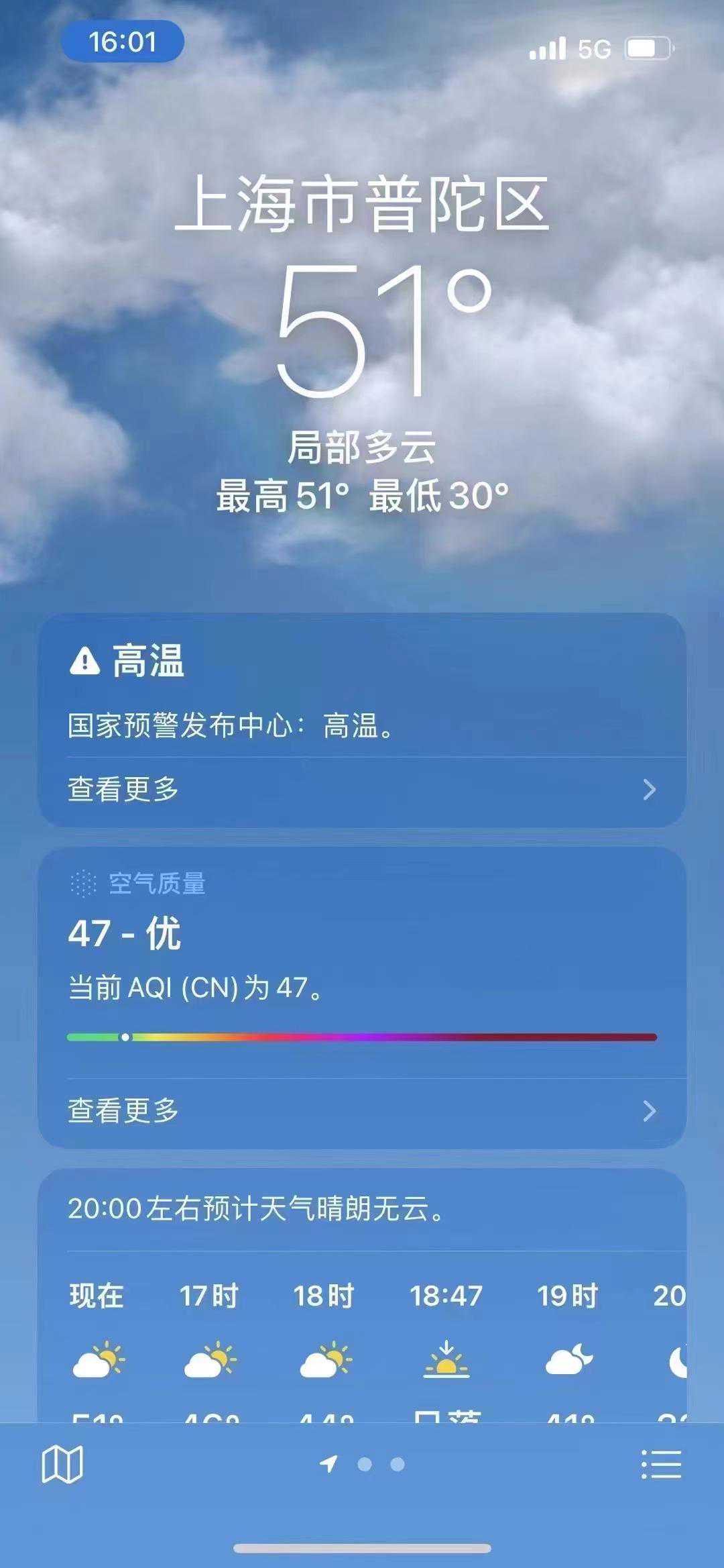 但值得注意的是,有不少苹果手机用户发现,系统自带的天气软件显示,上海昨日气温高达49℃,更有人截图到了51℃的数据。