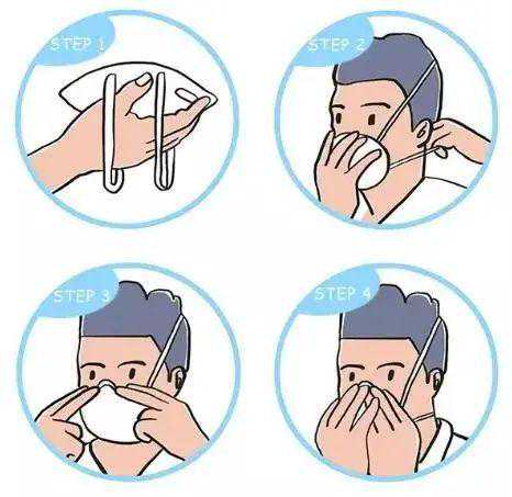 随身携带口罩,科学规范佩戴,选择大小合适的口罩,佩戴前洗净双手,佩戴时,夹紧鼻夹,不要将鼻子露在口罩外面。