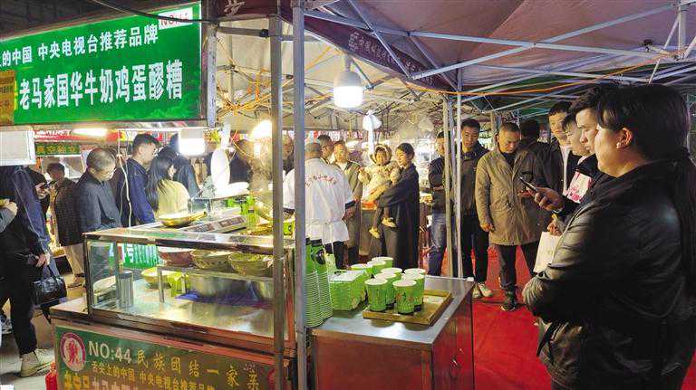 制作油胡旋的大姐,不到半小时已制作了十几张饼,看到食客争相拍照,大姐十分配合地给足镜头感,用筷子挑起的油胡旋在阳光下金黄诱人。在活动现场,南关民族风味一条街负责人米海举着“下一站兰州”的牌子,为游客讲解牛奶鸡蛋醪糟、油胡旋等兰州特色美食,热情洋溢地为兰州引流。