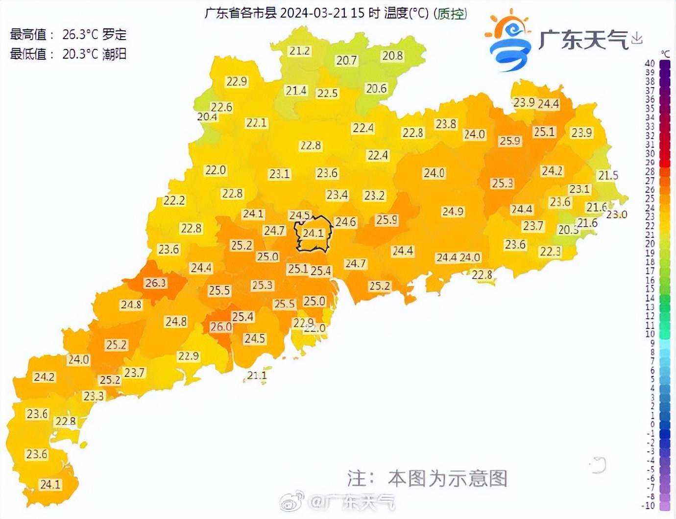 最高气温的罗定还录得26.3℃