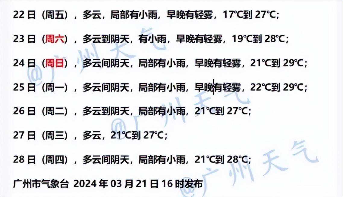 广州天气具体预报
