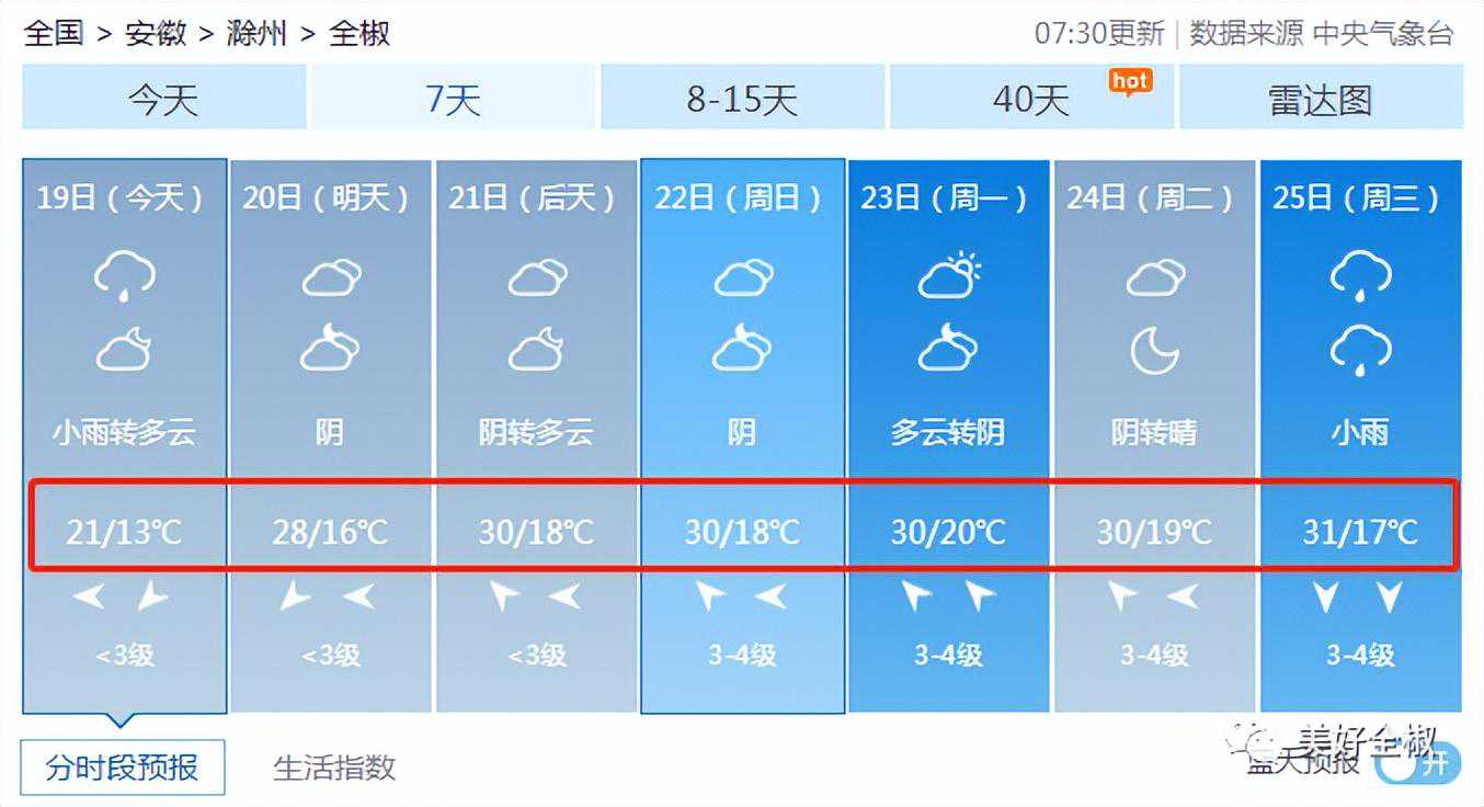 预计未来三天,淮河以南部分地区有降水,19日至20日受弱冷空气影响,全省气温略有下降。21日至24日全省以多云到晴天为主,气温逐渐回升,24日淮北地区最高气温31~33℃,江淮之间30~32℃,江南29~31℃。