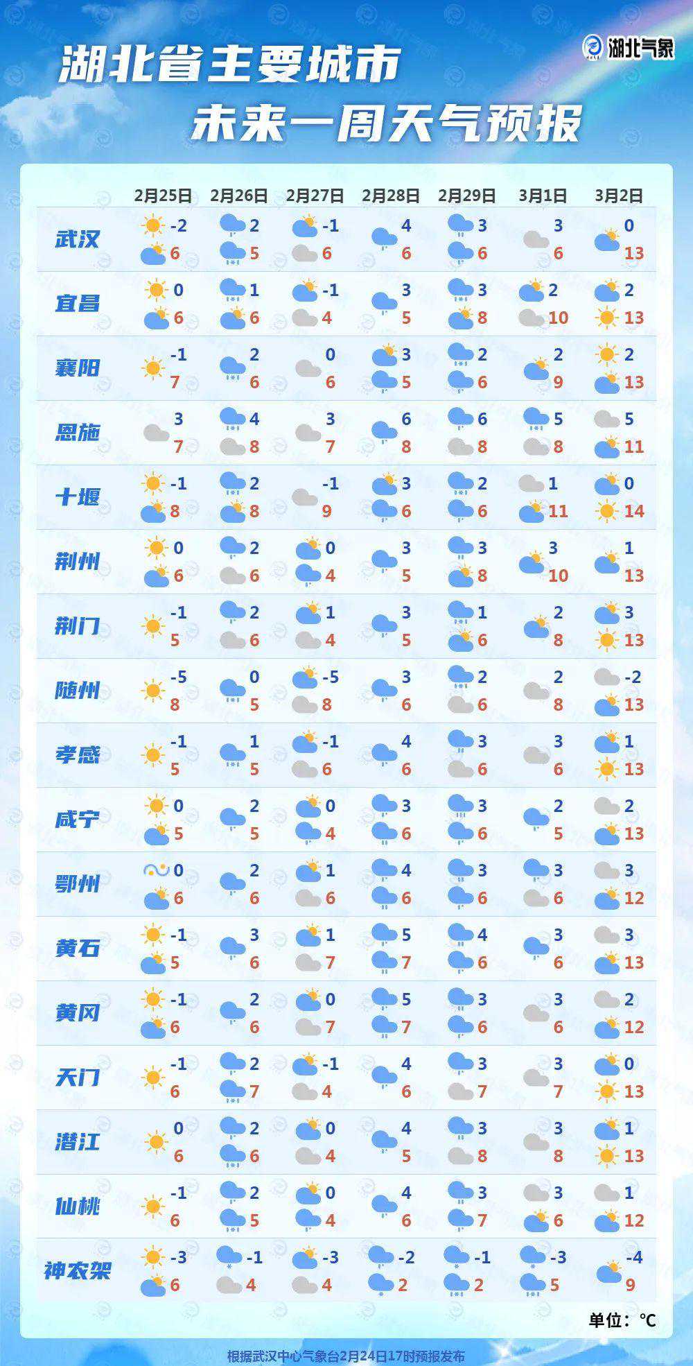 湖北未来三天天气预报