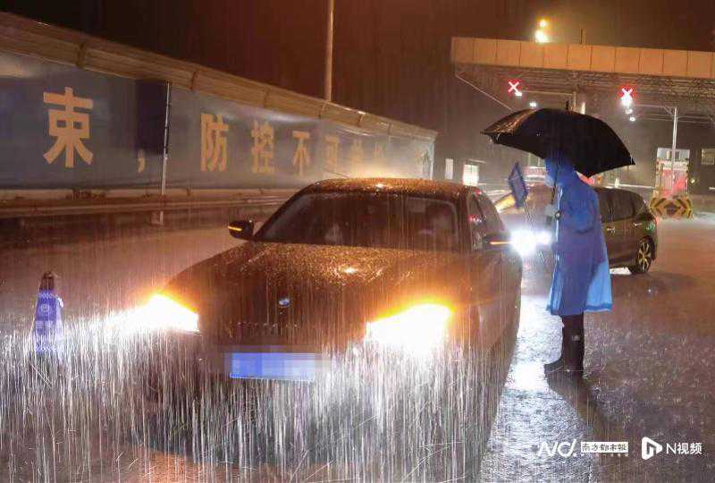 暴雨中,坚守防疫岗位