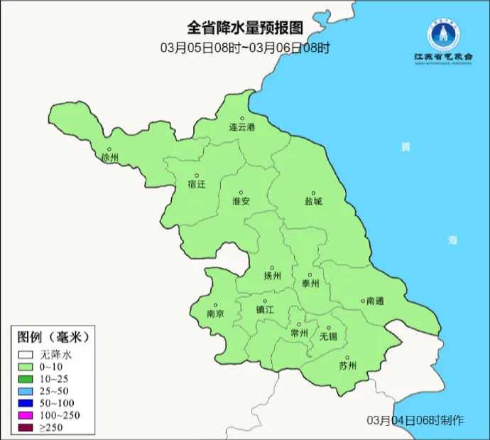 3月5日08时至3月6日08时,全省阴有小雨并渐止转阴。