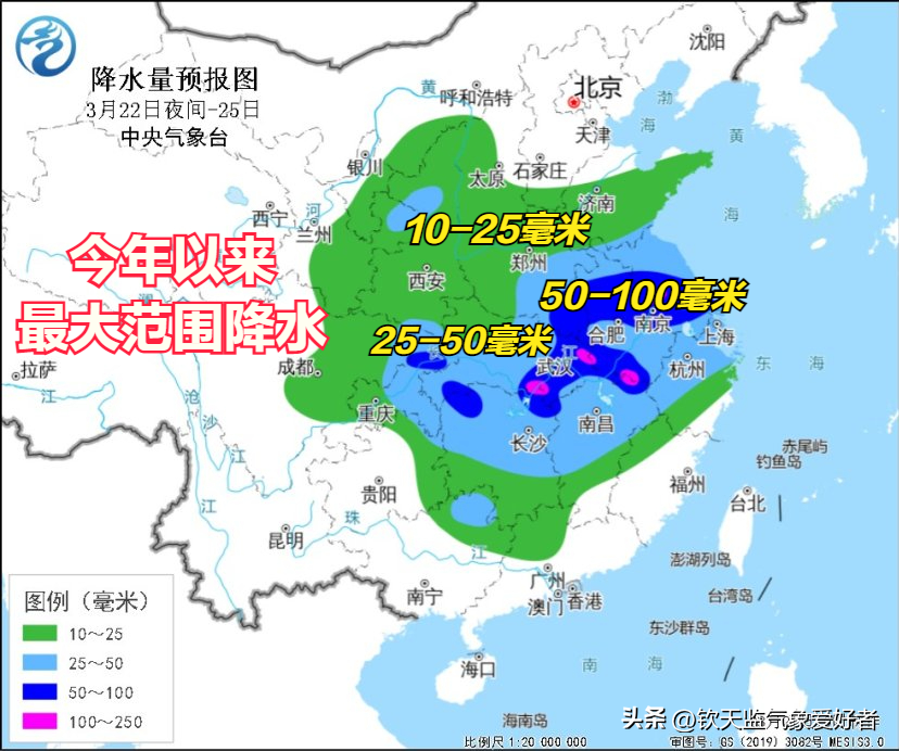 根据中央气象台发布的重要天气提示,本轮降水将从3月22日夜间从我国西部地区开启,23-25日是本轮降水的巅峰时段,湖北、安徽、江苏将成为降水中心,累计降水量可达50-100毫米,局部地区将超过100毫米。