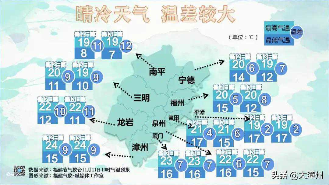 一是最近漳州昼夜温差较大——由于持续晴朗少云,漳州上空缺少了“一件保暖的大被子”,夜间地面热量散失加快,白天升温也更快,昼夜温差加大,大家会有“一日跨季”的感觉。