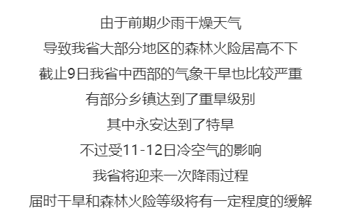 我省中北部地区的森林火险气象等级将有望得到缓解