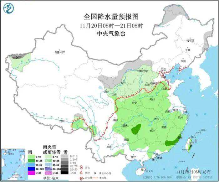 据陕西省气象台预报,今日起我省有降水大风降温天气,20日,榆林南部、延安西部、宝鸡西部局地、秦岭山区有雨夹雪。