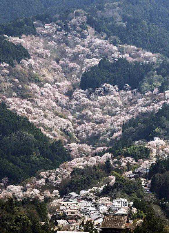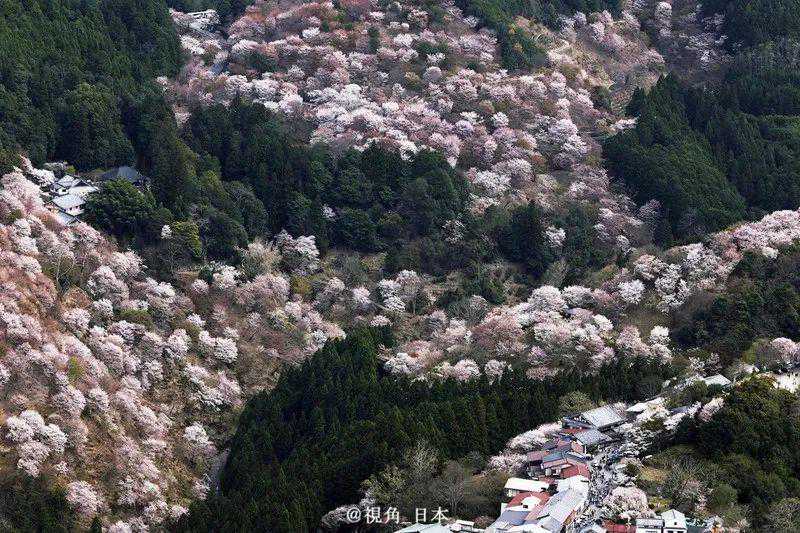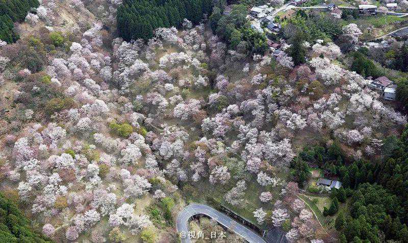 奈良县吉野山的樱花种植起源于约1300年前,山上共有200个品种约3万株樱花,其中主要为日本山樱,花朵颜色为淡粉色。