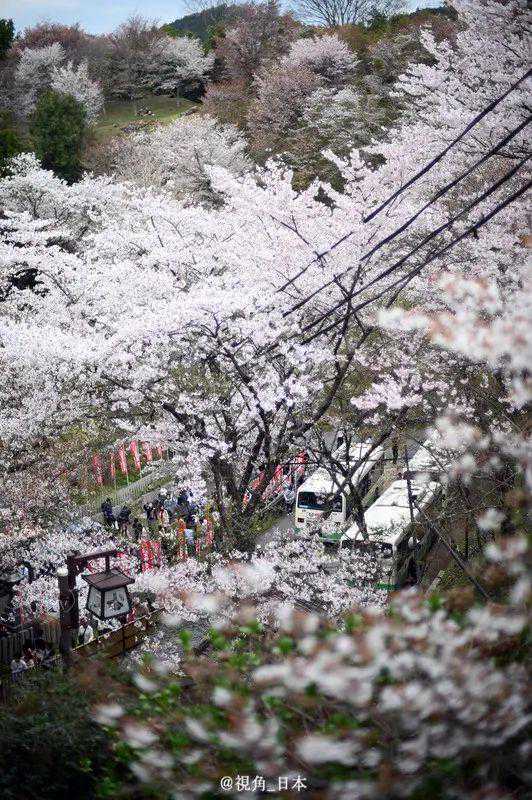 “一目千本”意为一眼望去可以看到一千株樱花,按照海拔高度又分为「下千本」、「中千本」、「上千本」和「奥千本」。今年的花期比去年晚了约1周,目前下、中千本已经满开,海拔较高的上千本已经七分开,山顶附近的奥千本也将于4月中旬迎来满开。