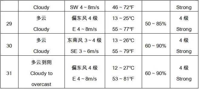 根据扬州气象预测,3月31日当天,扬州天气为多云到阴,气温在12℃-27℃。