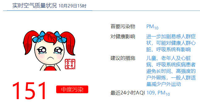 虽然之后空气状况已逐渐转好,但截至15时仍有中度污染。