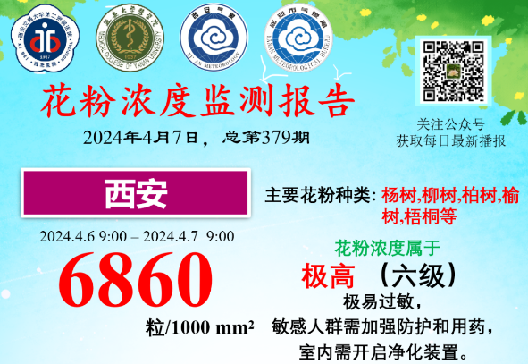 西安市花粉浓度为6860粒/千平方毫米,