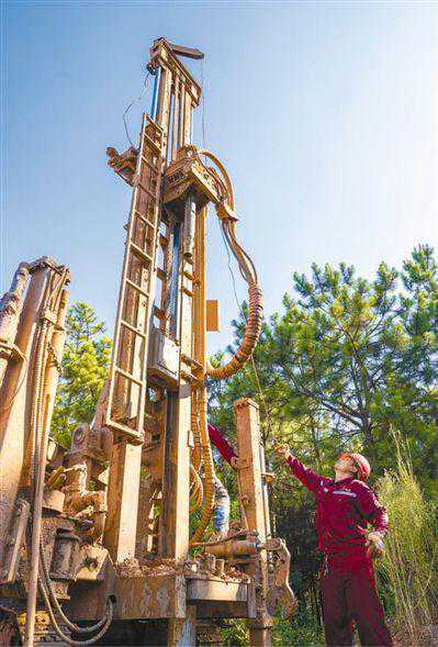 8月15日,江西省吉安市吉水县八都镇东坊村,施工人员进行抗旱井打井作业。谢东摄(影像中国)