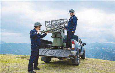 8月16日,湖北省宜昌市秭归县水田坝乡,工作人员用流动式火箭车进行人工增雨作业。王罡摄(影像中国)