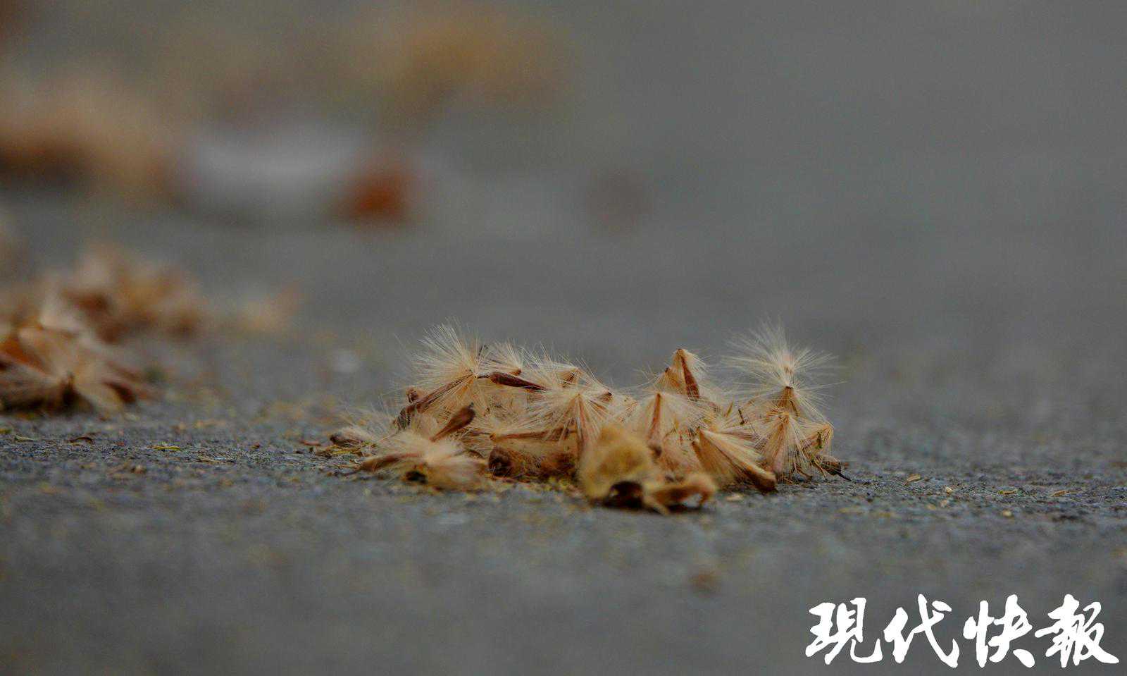 芳菲四月,天气升温,但令人烦恼的毛絮絮又悄悄飘了起来。4月7日,现代快报记者在南京城区主干道看到,路边地上散落着零星的黄色毛絮,一簇簇、一团团,有的裹成了一堆。