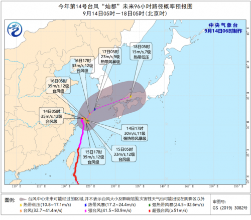 中央气象台9月14日06时发布台风黄色预警: