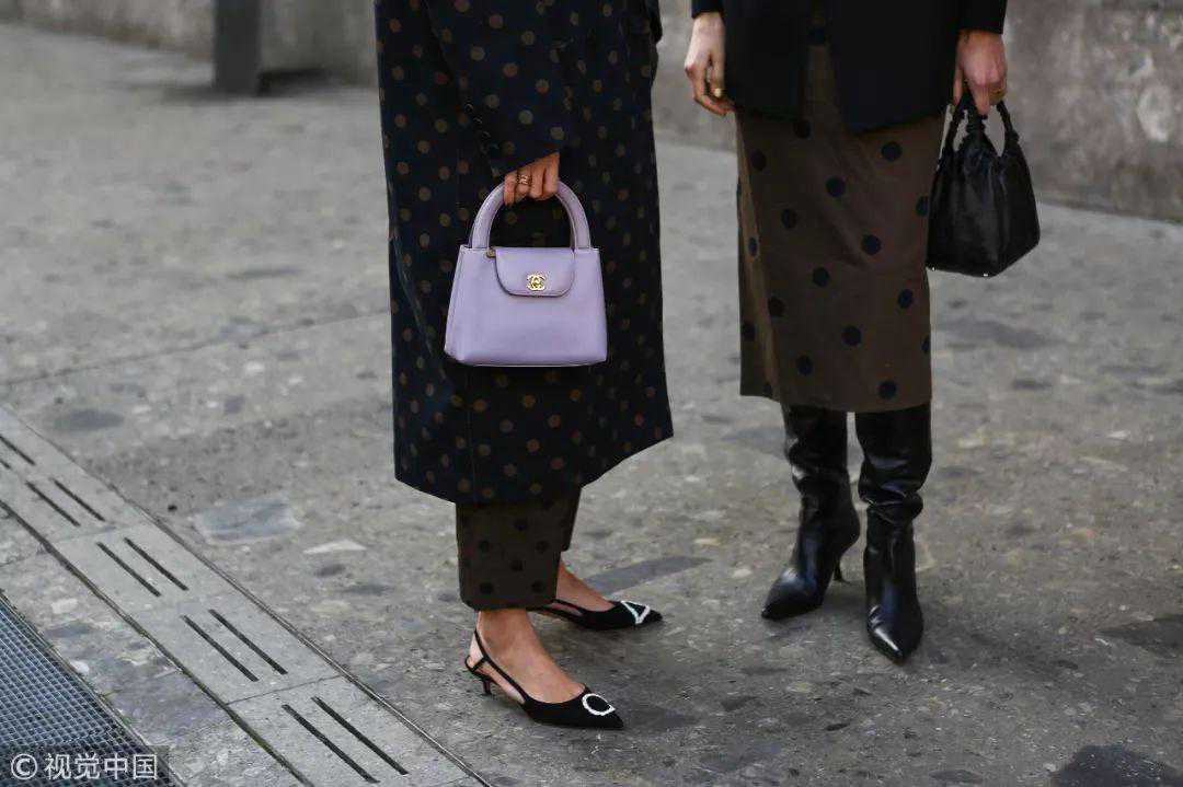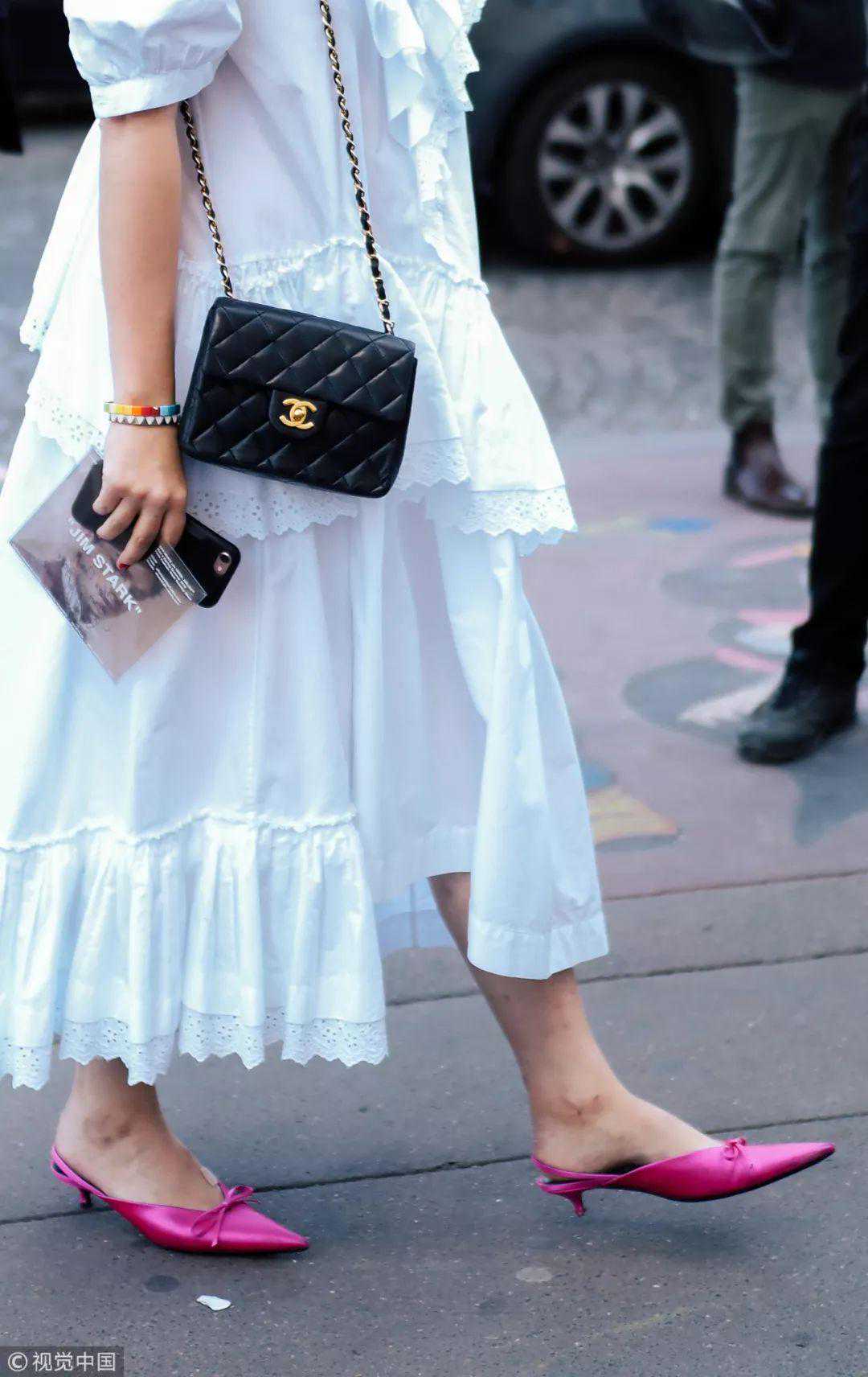 猫跟鞋可以完美地软化严谨的穿搭,搭配西装或礼服裙都给人一种俏皮的感觉。
