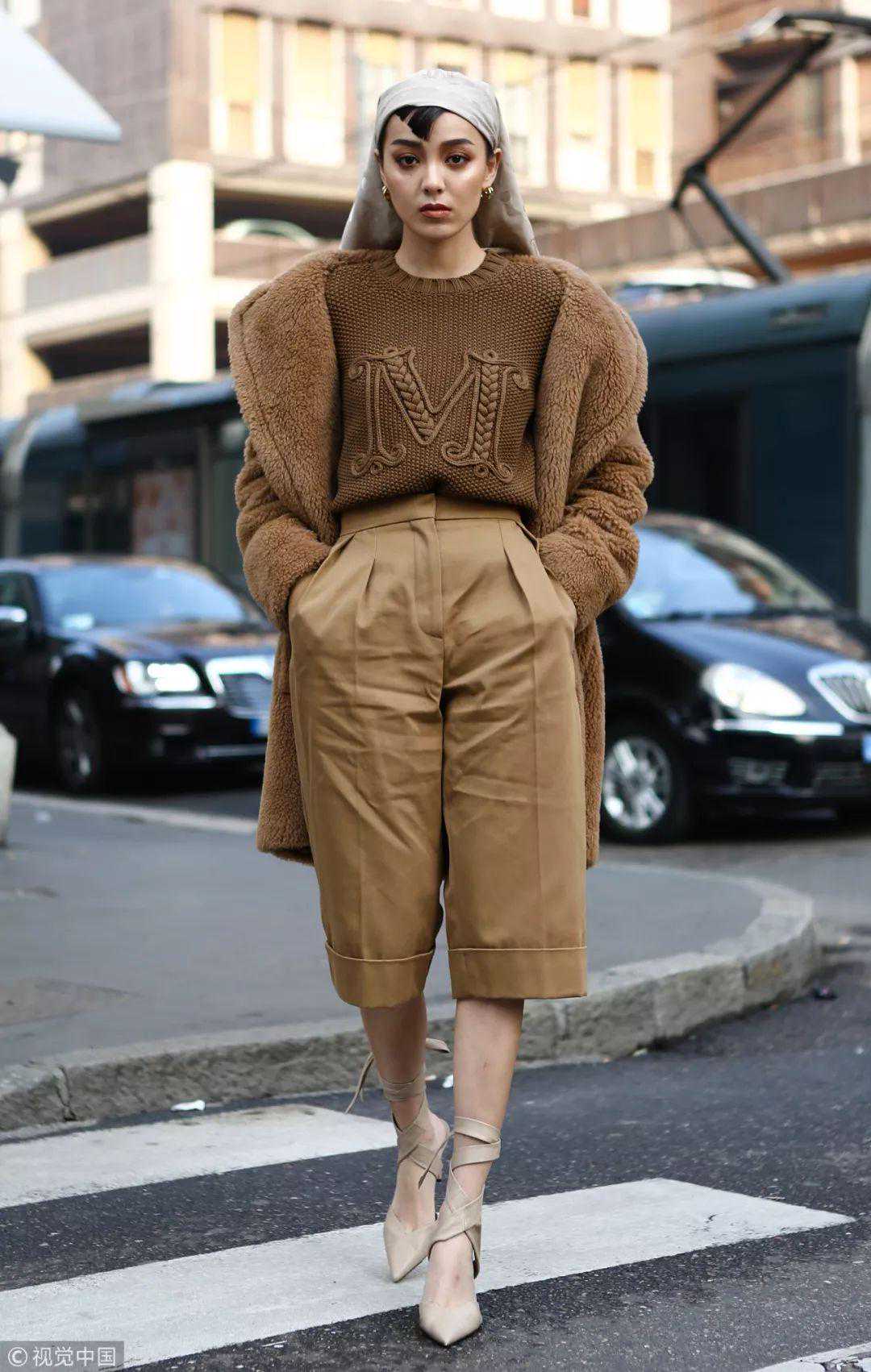 绑带式的和靴子看上去视觉效果差不多,同色系搭配可以让腿长MAX。