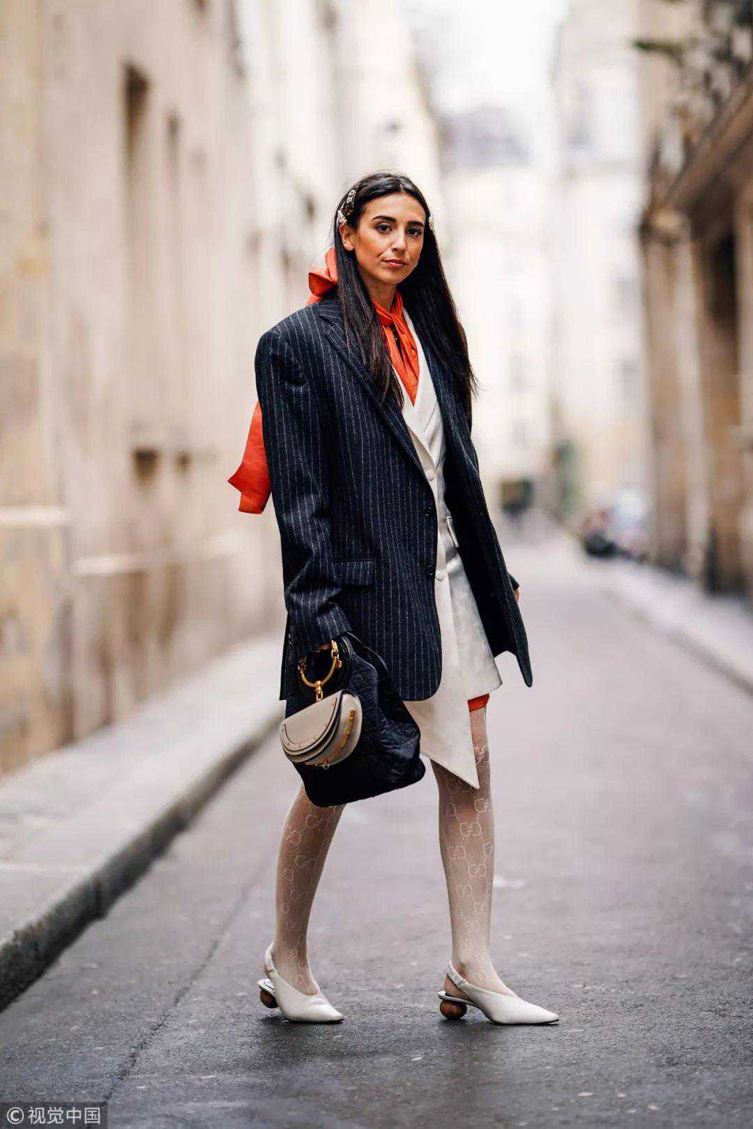 Oversize西装+机车短裤+同色系袜子+亮色尖头鞋,再来一幅墨镜,slay全场!男生见了都要管你叫大哥。