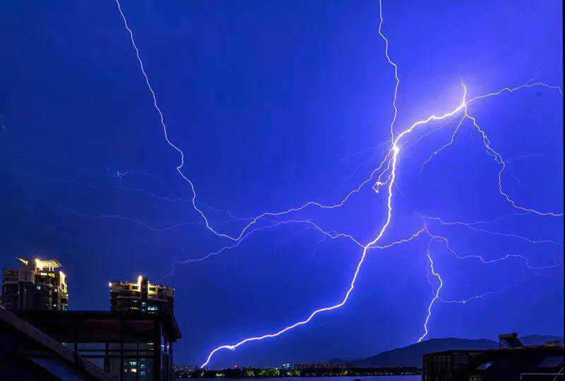 △去年7月22日晚,富阳上空闪电(王胜昌摄)