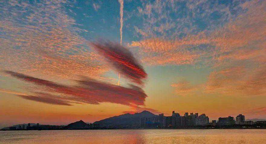 △6月20日东洲岛上空的云雨(朱启平摄)