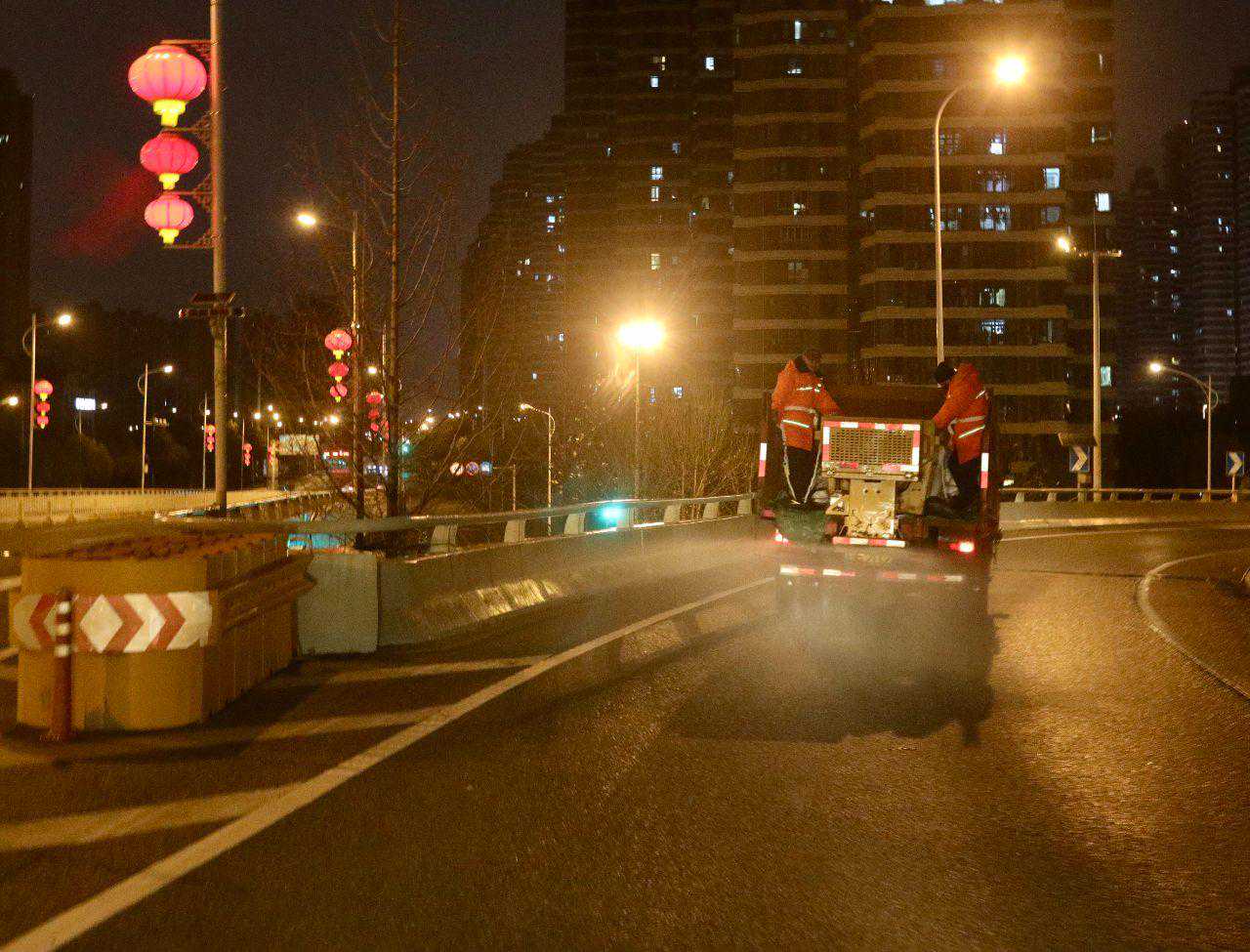 “我们已启动融雪防冻应急响应机制,组织值班备勤。昨晚10点开始,已对汉阳大道、鹦鹉大道、国博大道、四新南路、江城大道、杨泗港快速通道、拦江路、归元寺路、马鹦路、芳草路、墨水湖北路等所有易结冰点位、风口、坡梯进行实时测温,预撒融雪剂,防止道路结冰。针对温馨苑小区天桥、龙阳大道天桥、五里新村天桥等主要人行天桥容易发生危险的点位,铺设防滑垫,及时发现和排除潜在安全隐患。”汉阳区城管执法局环卫集团相关负责人介绍。