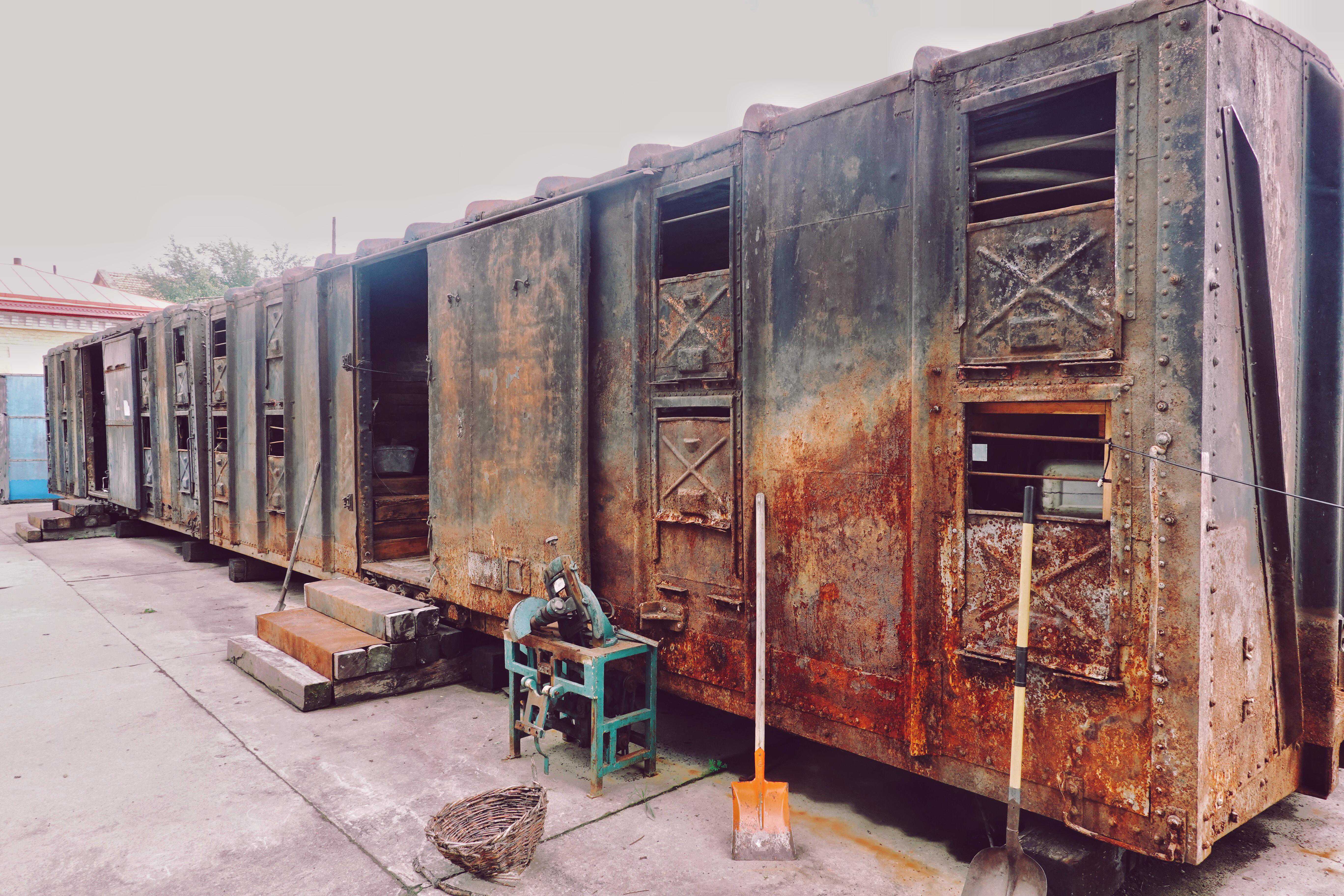 辽沈战役时期的火车皮,陈列在老刘家的院子里