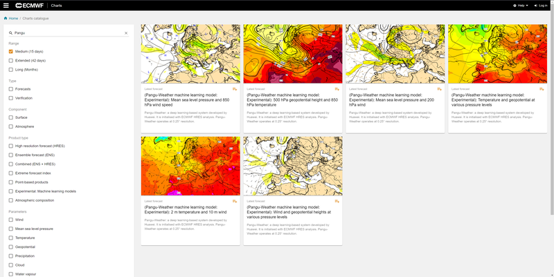 7月31日,华为数字中国宣布,华为云盘古气象大模型正式上线欧洲中期天气预报中心官网,这是全球气象预报模型汇总的一个平台,也是全球最为专业的气象网站之一,在网站上,全球天气预报员、气象爱好者和公众均可免费查看盘古对未来10天全球天气的预测。我们之前文章中对于杜苏芮台风路径的预测就是来自这个网站。