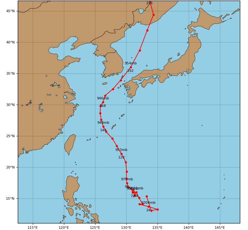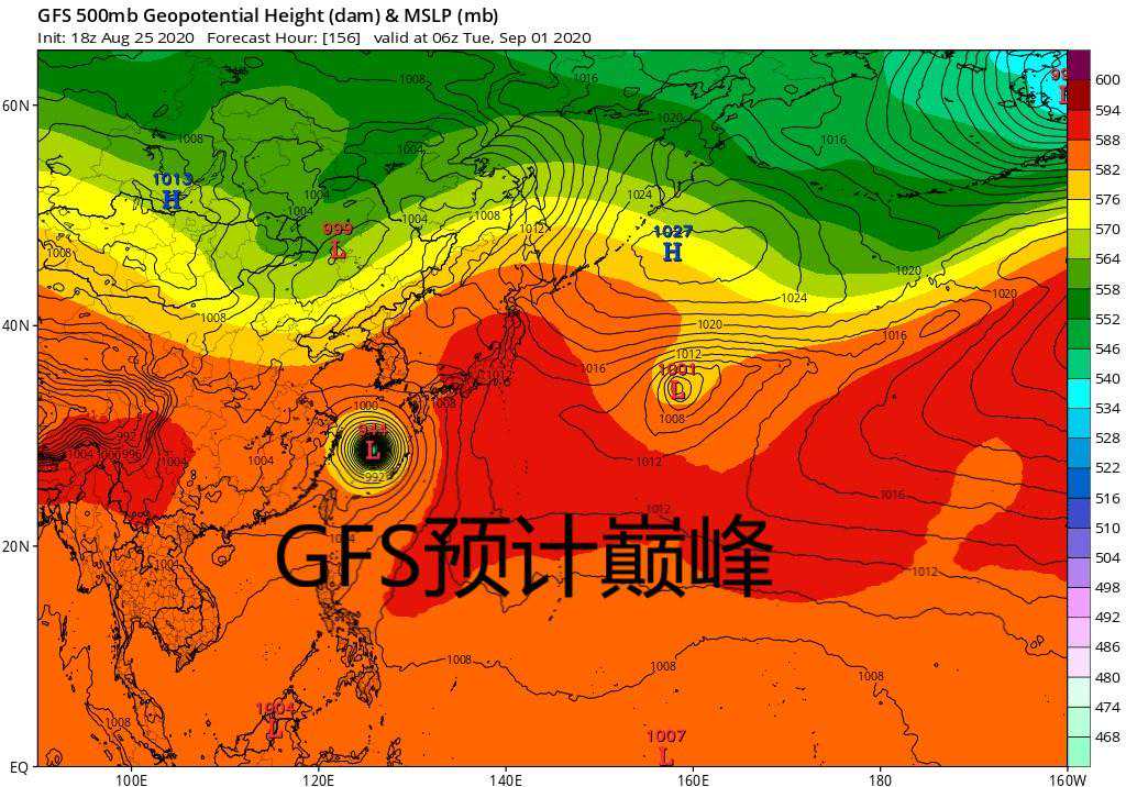 根据GFS的模拟情况来看,预计在8月27日的时候,94W将会快速增强,预计在8月28日的时候达到991hpa气压值,所以这个时候9号台风美莎克将可能形成,并且我们从日本气象厅在8月27日的时候已经显示了94W为TD,气压值为1000hpa。所以基本可以确定94W就是今年的9号台风美莎克,趋势明确,或即将生成。在增强之后,预计该台风形成还将持续北上,巅峰预计达到944hpa。同时在靠近我国江浙沪地区之后又会反转,预计会进入到日本和朝鲜连接海域,然后进入日本海减弱。按照GFS的情况来看,可能不会登陆这两个区域,但是进入日本海之后,预计会往俄罗斯方向发展。