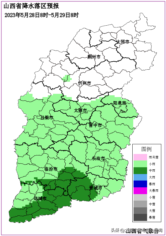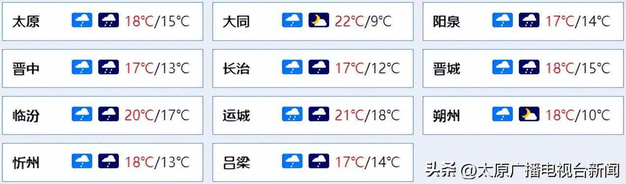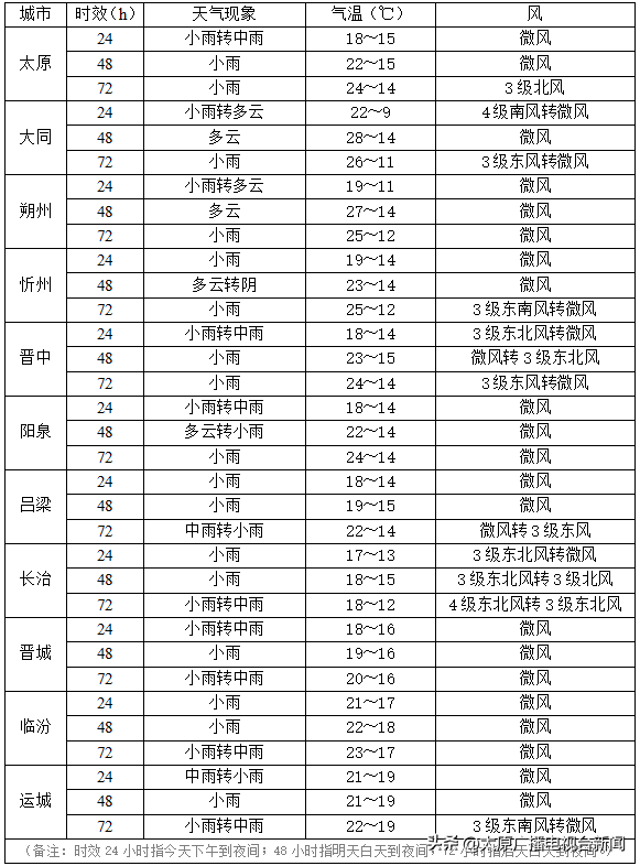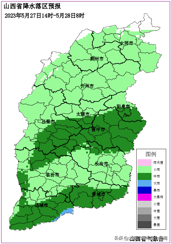 27日下午到夜间:全省阴天,有小雨,中南部部分地区有中雨,运城、晋城等地的局部地区有大雨。