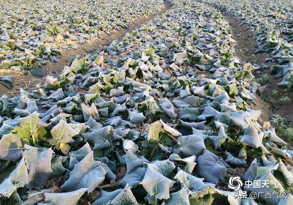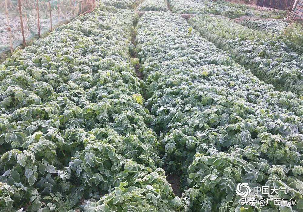 今天晚上和明天白天,全区晴到多云,高寒山区及桂林、柳州、贺州、河池、百色、来宾、梧州等市的部分地区有冰冻或霜冻,我区其它地区局部有霜冻。各地最低气温:高寒山区零下9℃~零下3℃,桂北零下3℃~2℃,桂中2~4℃,桂南4~7℃。
