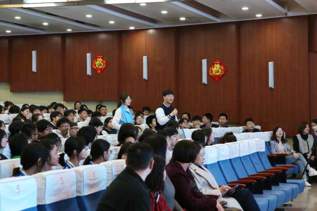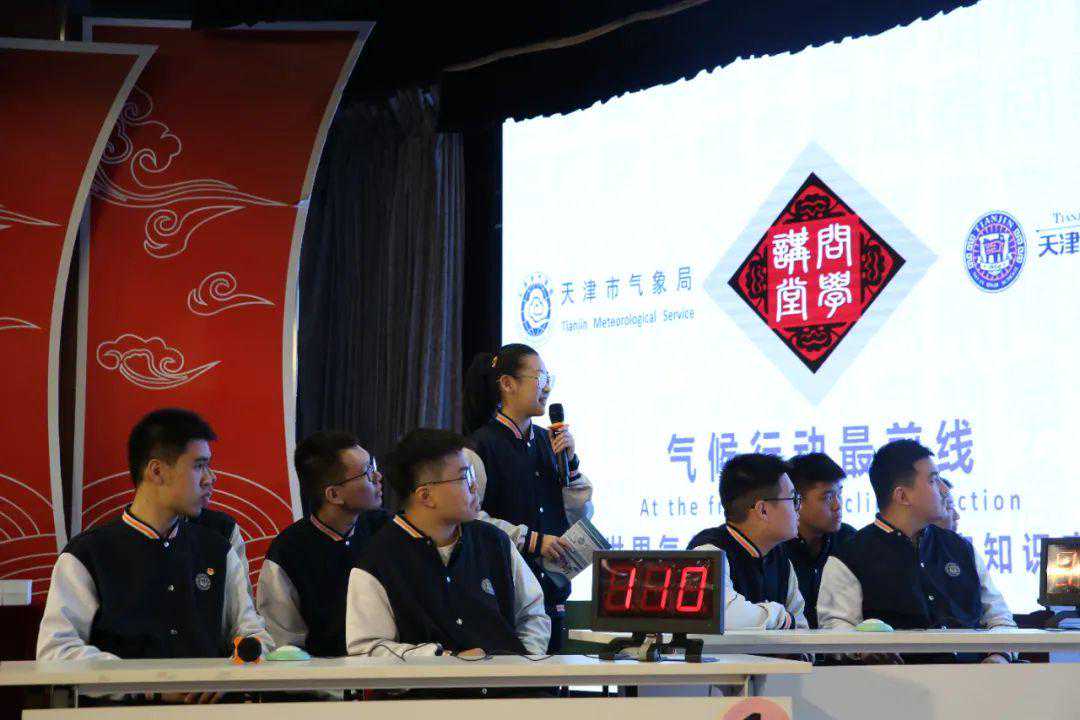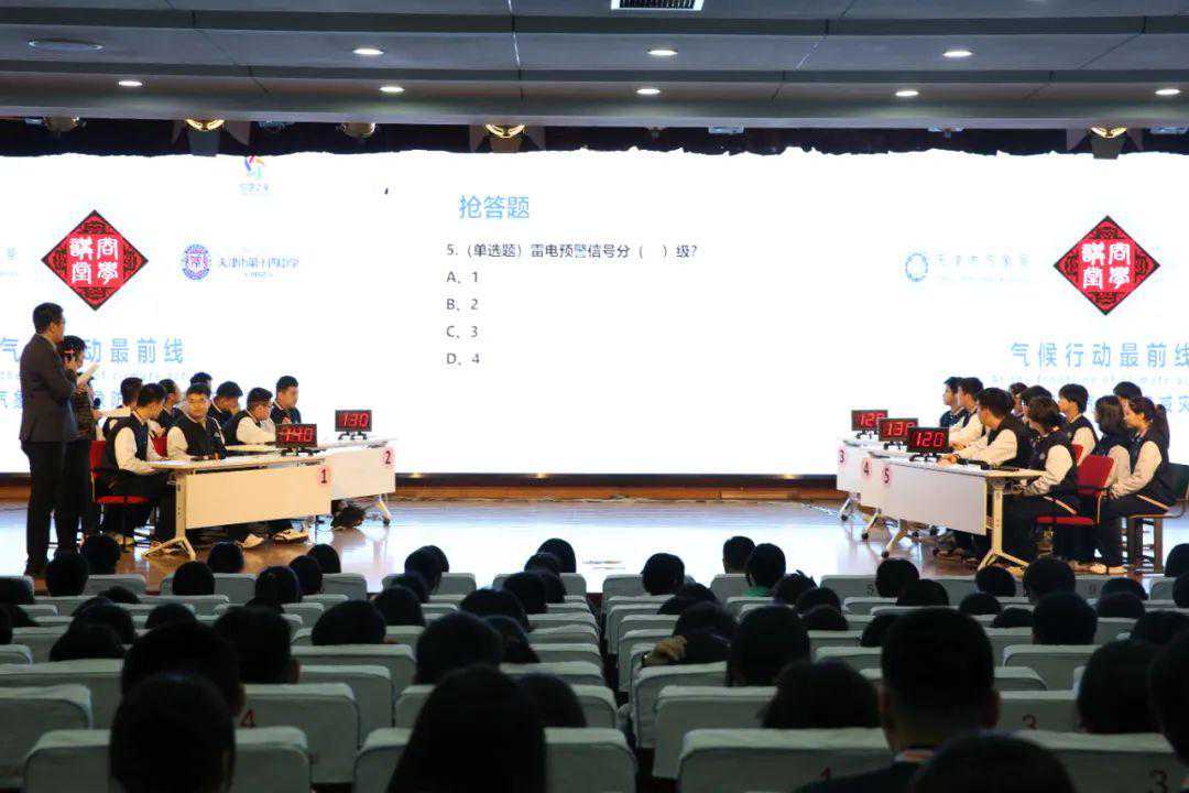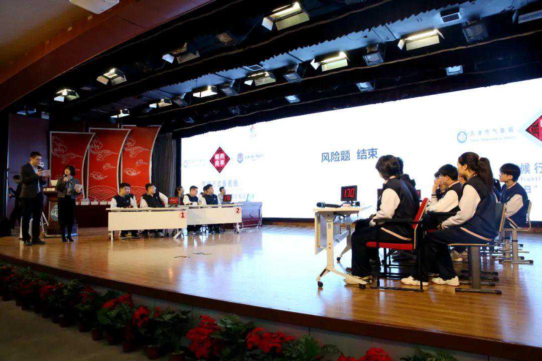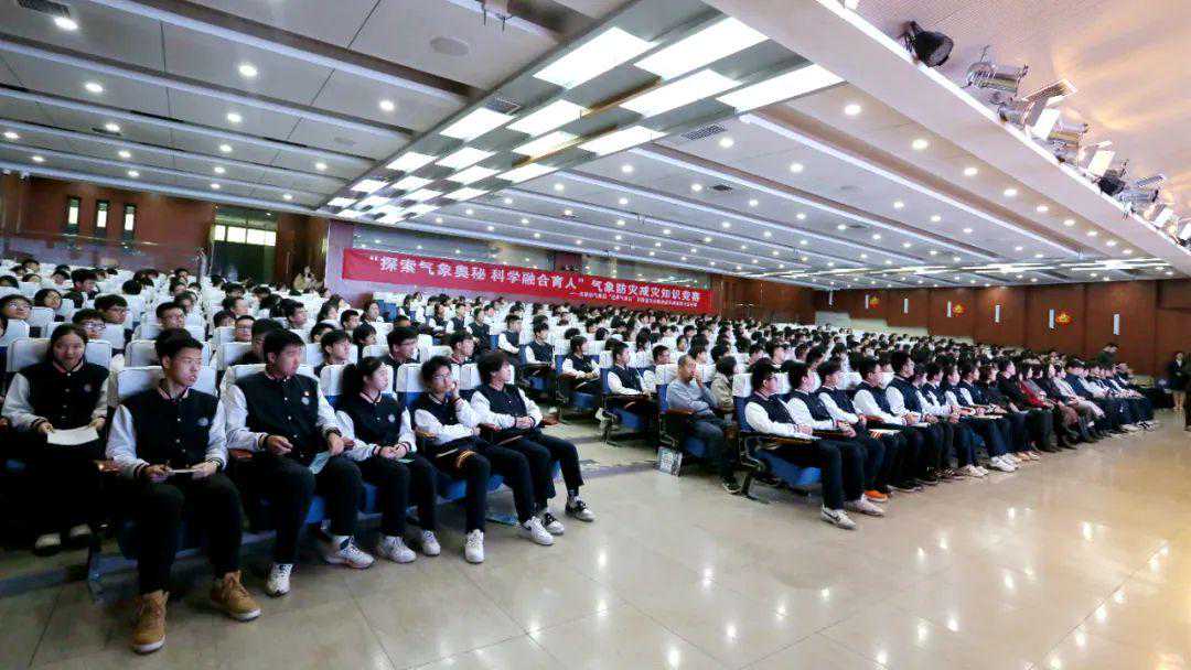 在知识竞赛环节,气氛火热,此起彼伏的答题声、趣味环节的笑声充斥于报告厅。学校共派出高中二年级学生组成5支队伍参加知识竞赛。竞赛题目涵盖填空、单选、多选等多种形式,共置了必答题、抢答题、风险题三个环节。另外,竞赛还创新将古诗词、物理、生物、网络热词等融入气象科普,进一步增强了竞赛的趣味性和互动性,参赛学生们相互配合、奋勇争先。此外,竞赛还设置了面向在场学生的互动问答,点燃了师生踊跃抢答的热情。